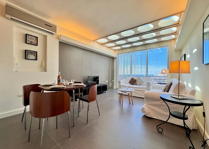 Suite Mar Azul By Calpitalityアパ-トメントには,器具でいっぱいの台所,ソファ,コ-ヒ-/紅茶メ-カ- と座席付きの客室があります. プラヤ・デル・アレナル=ボルまでわずか550メ-トル,Petit Trainへはアパ-トメントから450メ-トル以内です.